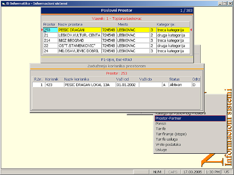 Povezivanje poslovnog prostora sa zakupcima prostora vrši se preko ovog bloka i unošenjem odgovarajuĉih statusa.